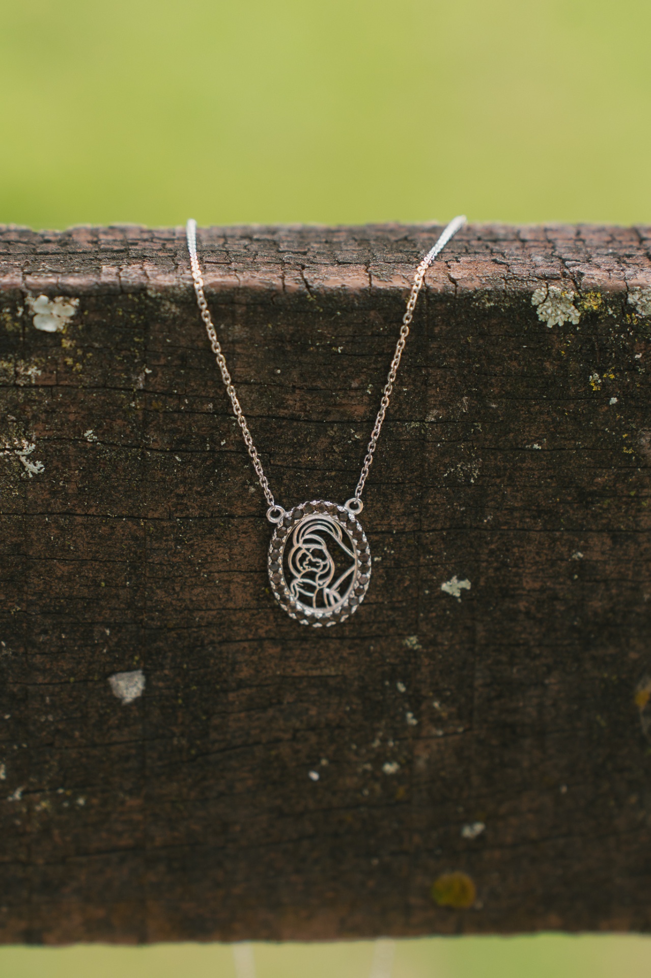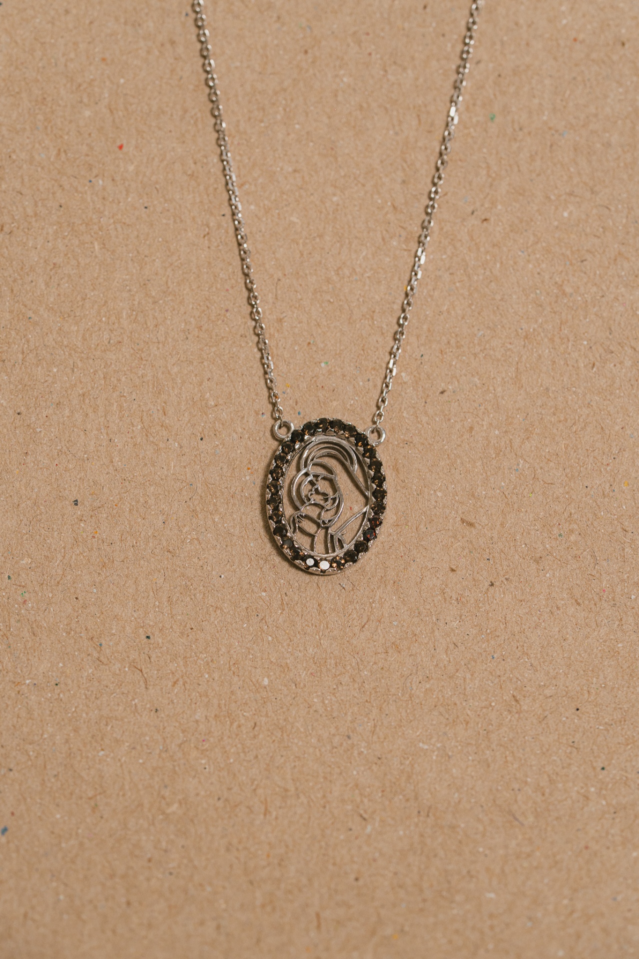 Colar Mãe em ouro branco com quartzo fumê.
