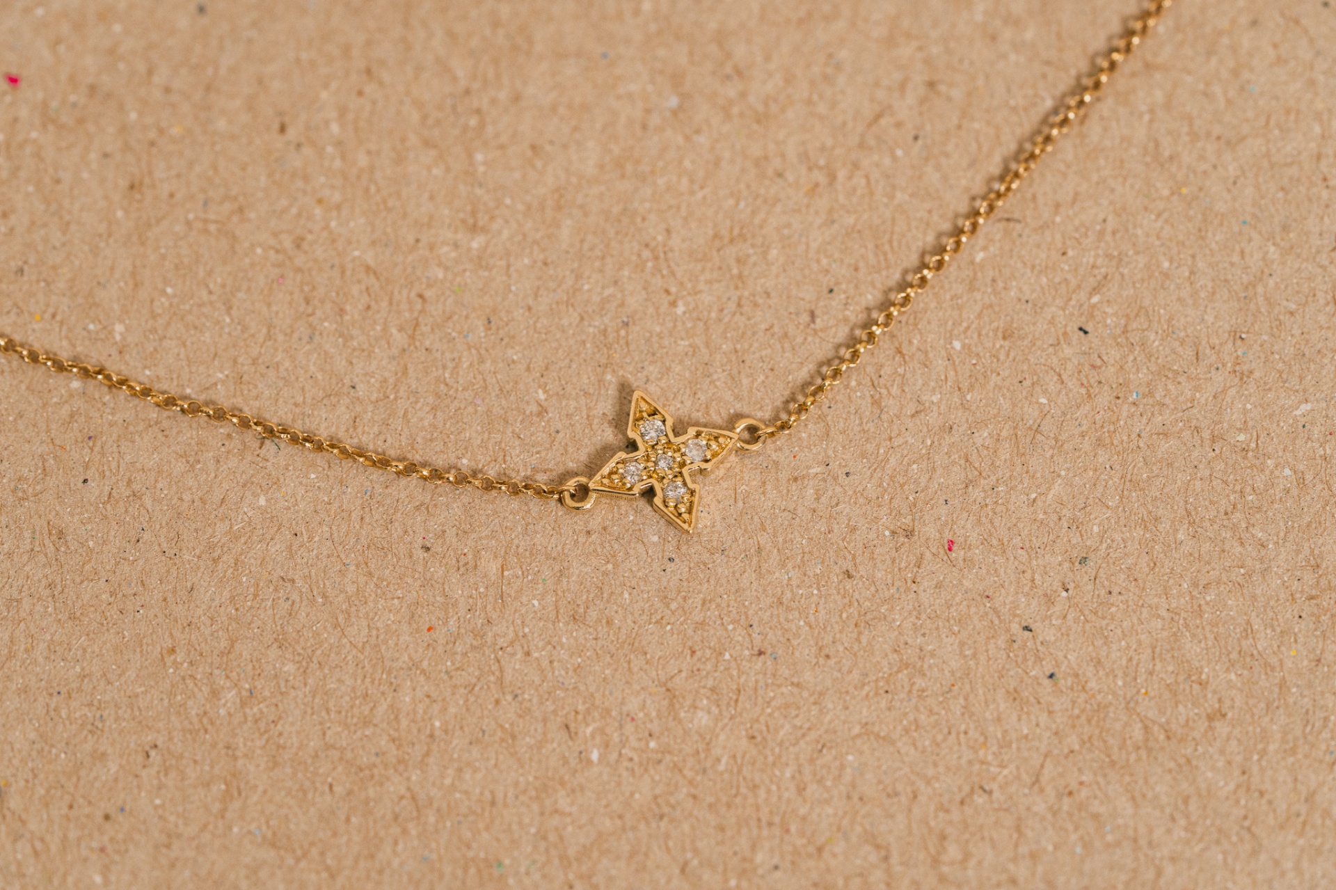 Colar Proteção com ajuste em 40cm, ouro amarelo com diamantes.